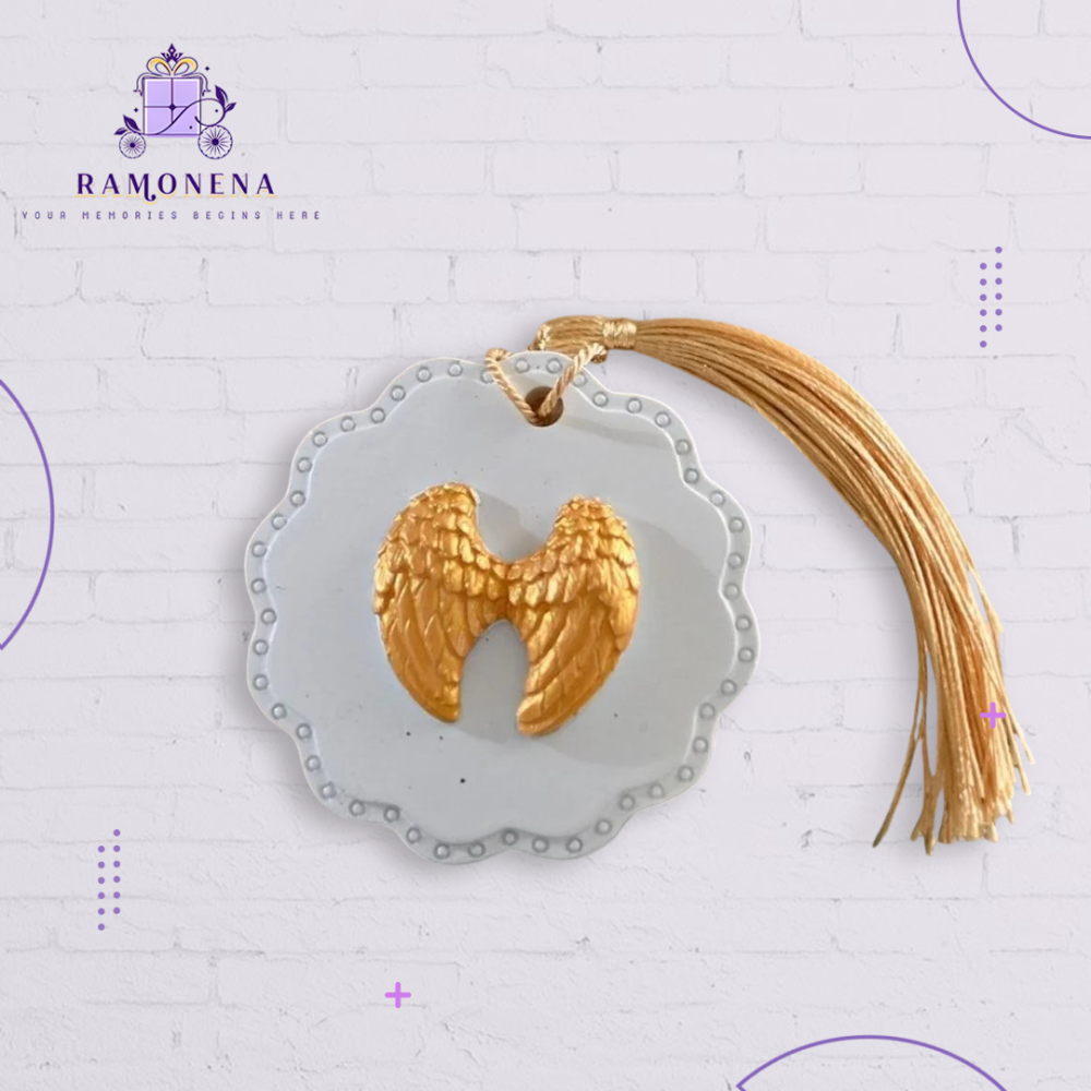 تعليقة حجر عطري بشكل جناحين ملاك لون ذهبي تقدم لك تصميمًا أنيقًا وعطريًا يمكن تعليقه في أي مكان بسهولة، سواء في السيارة، الغرفة، أو المكتب. هذه التعليقة تجمع بين الجاذبية البصرية والرائحة العطرة لتجربة فريدة ومميزة، مع إمكانية اختيار اللون أو إضافة تنسيق خارجي ولوجو حسب رغبتك.